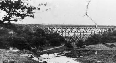 Fire broke out last night on the viaduct bridge, a wooden structure, near Boldon Colliery Station, over which runs a mineral line from the station to the colliery yard.