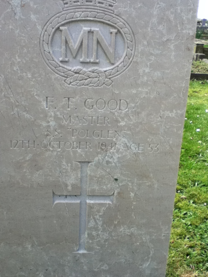 Story | Captain in the Mercahnt Navy - Master of the S.S Polgen died 1941 aged 53. He was also Captain of the Lake Geneva which was bombed by 5 aeroplanes whilst at anchor in Alicante in 1939, one bomb tore open the side, whilst one of the aeroplanes crashed on the quayside setting fire to the ships bridge and jolly boat.