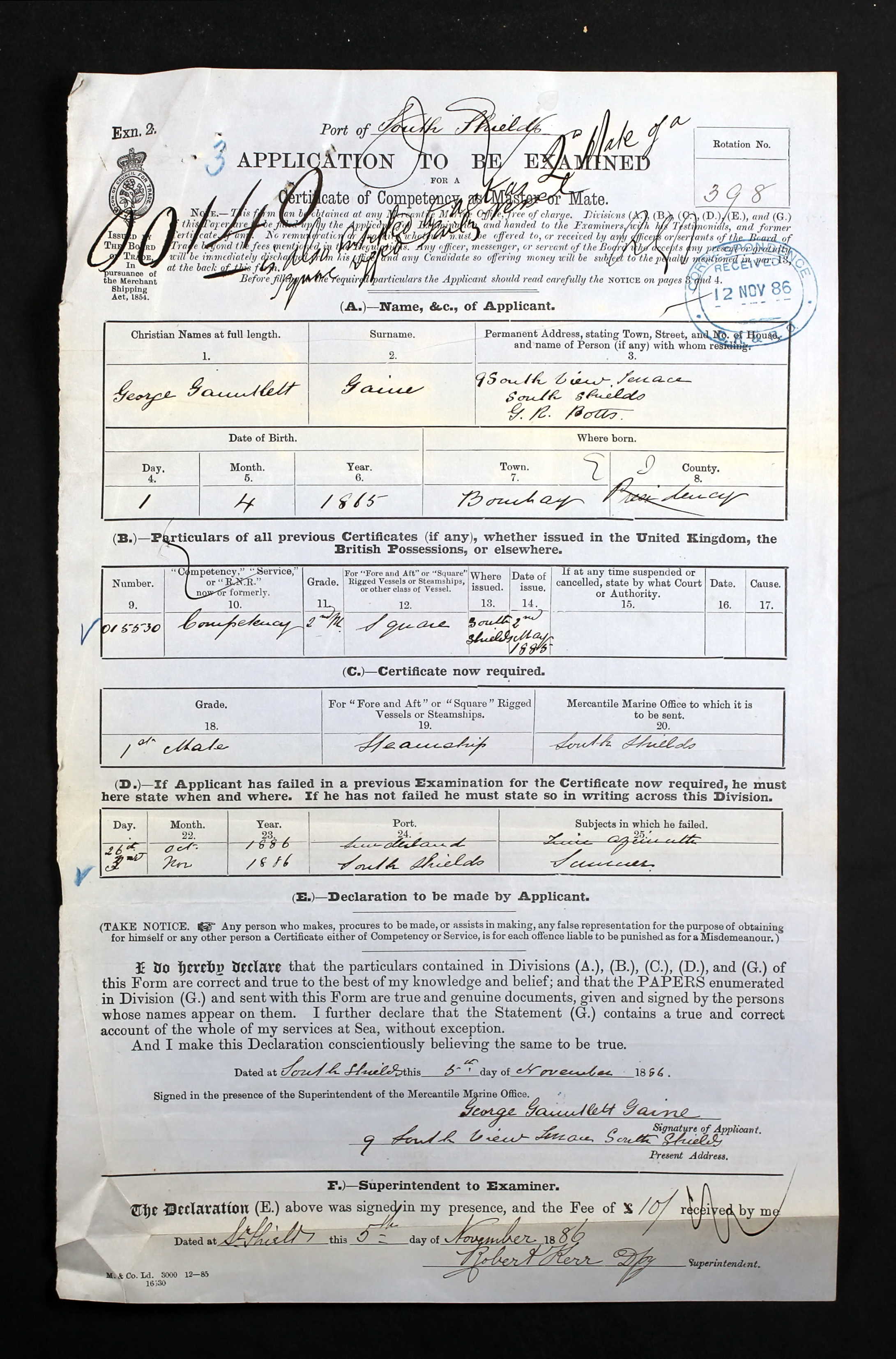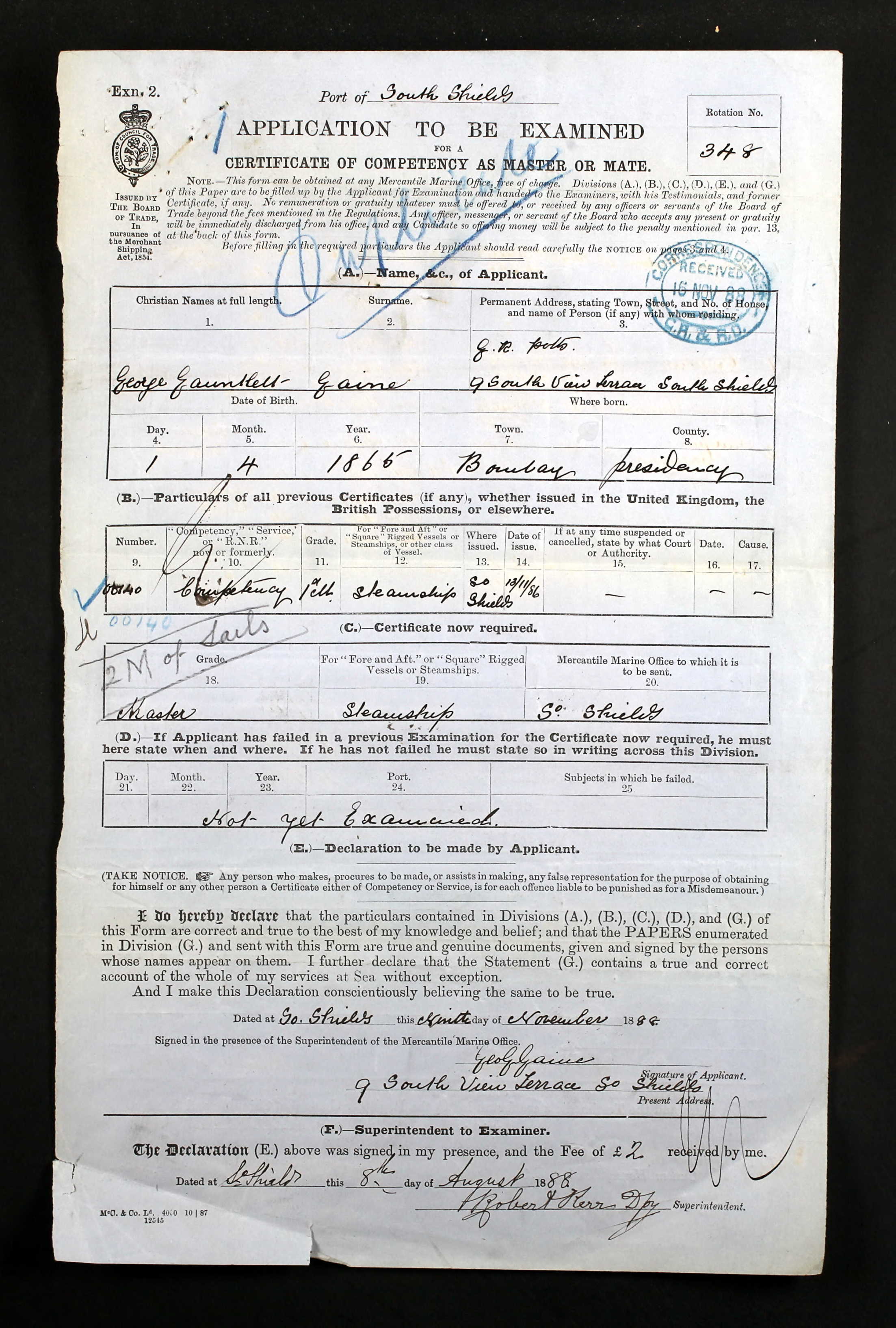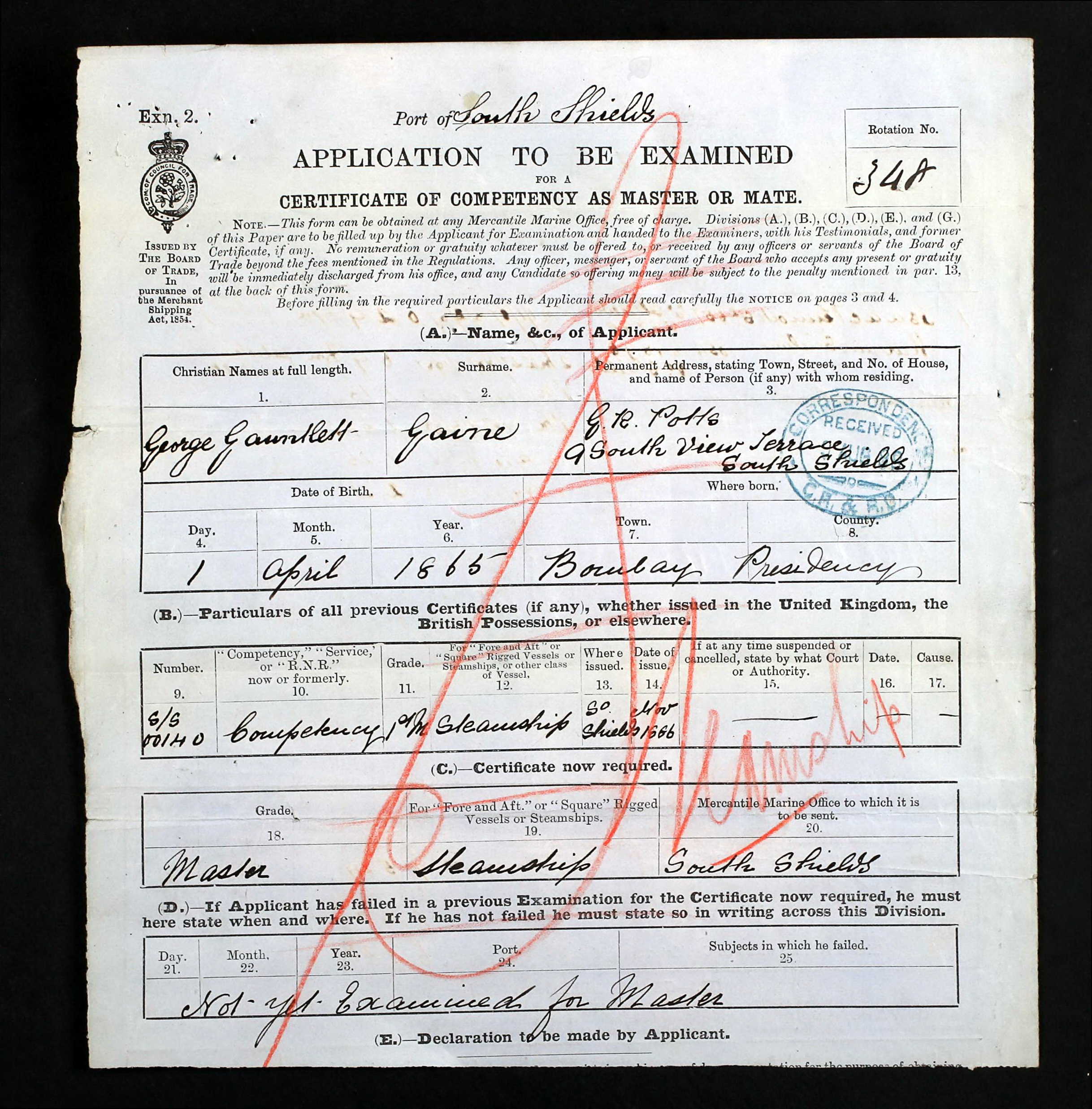 Story | George a ships captain Born in Bombay India, was employed in the Merchant Navy on board the SS Clearfield. He was married to Mary B Gaine b1866 with sons James S Gaine b1892, Arnold b1893, Ernest b1901, g donald b1903 and C Cyril b1907. The SS Clearfield was requisitioned for Admiralty service and was on route to Invergordon - Hampton Roads when she was Sunk off Flannan Island,in the Outer Hebrides on the 24th of Cotboer 1916 by uboat U55 Wilhelm Werner. The clearfield was a 4,229 ton Tanker built in 1909 by Tyne Iron SB.Co., Ltd., Newcastle and was operated by Hunting SS. Co., Ltd. (Hunting & Son), Newcastle. All 31 hands on board were lost.