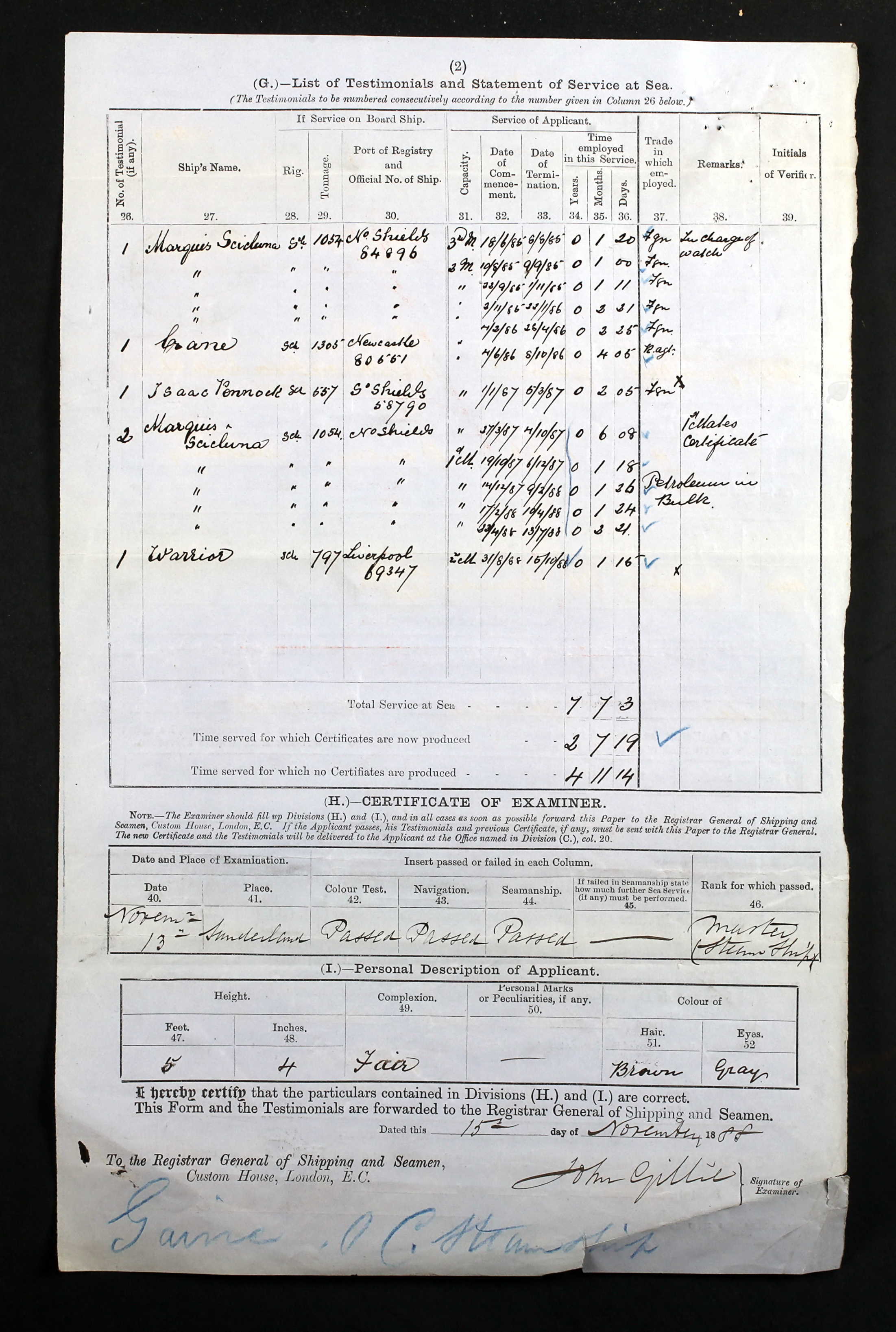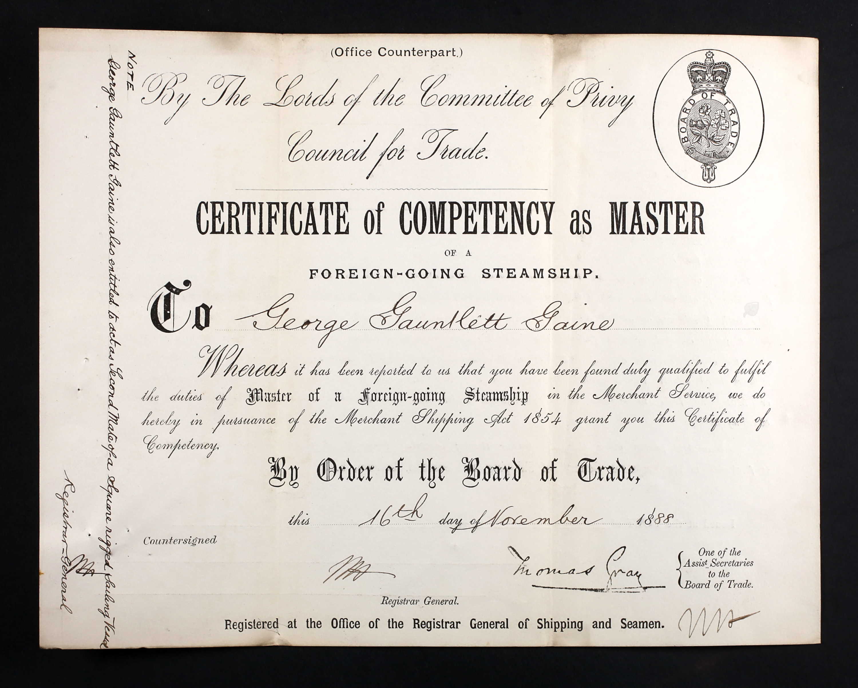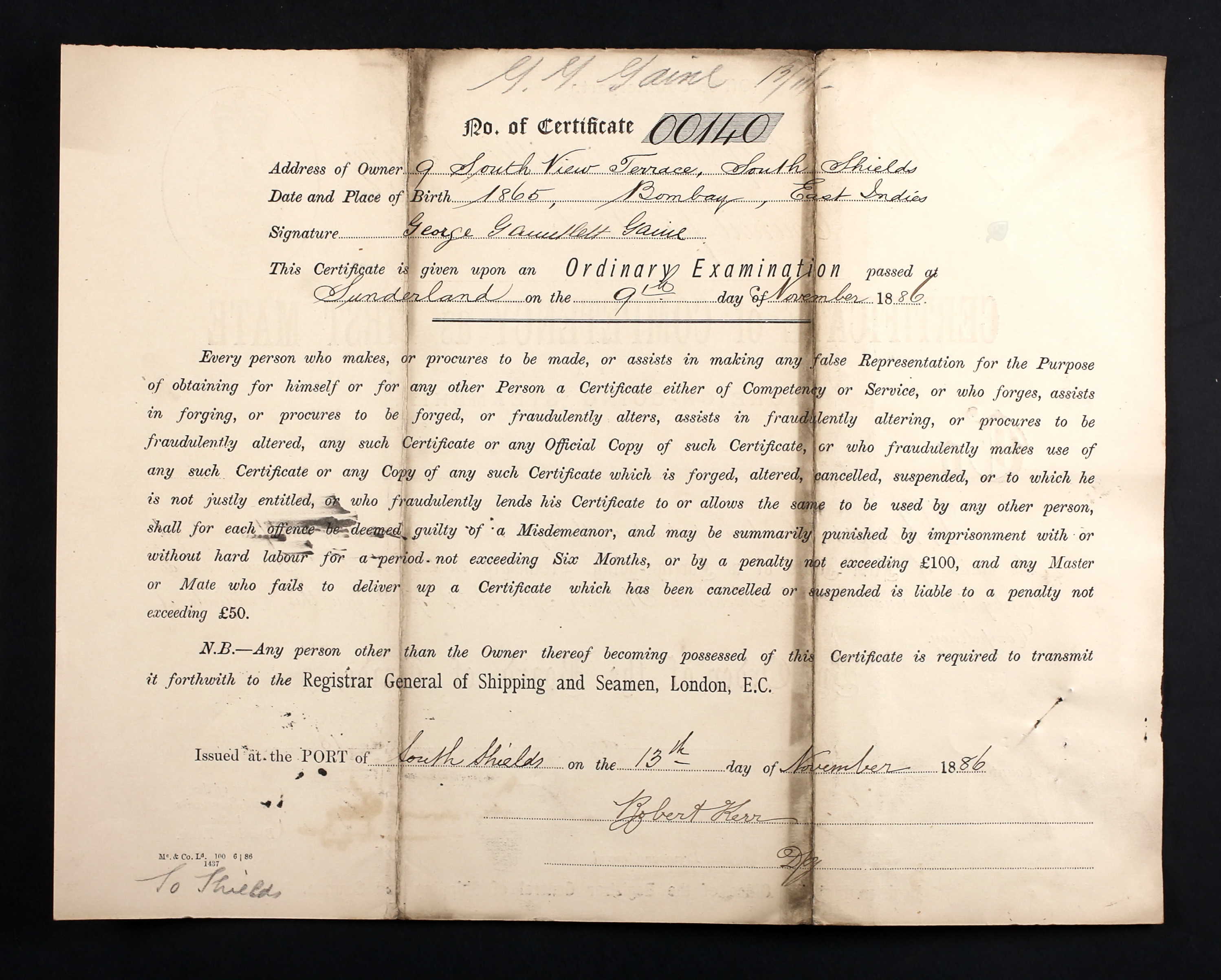 Story | George a ships captain Born in Bombay India, was employed in the Merchant Navy on board the SS Clearfield. He was married to Mary B Gaine b1866 with sons James S Gaine b1892, Arnold b1893, Ernest b1901, g donald b1903 and C Cyril b1907. The SS Clearfield was requisitioned for Admiralty service and was on route to Invergordon - Hampton Roads when she was Sunk off Flannan Island,in the Outer Hebrides on the 24th of Cotboer 1916 by uboat U55 Wilhelm Werner. The clearfield was a 4,229 ton Tanker built in 1909 by Tyne Iron SB.Co., Ltd., Newcastle and was operated by Hunting SS. Co., Ltd. (Hunting & Son), Newcastle. All 31 hands on board were lost.