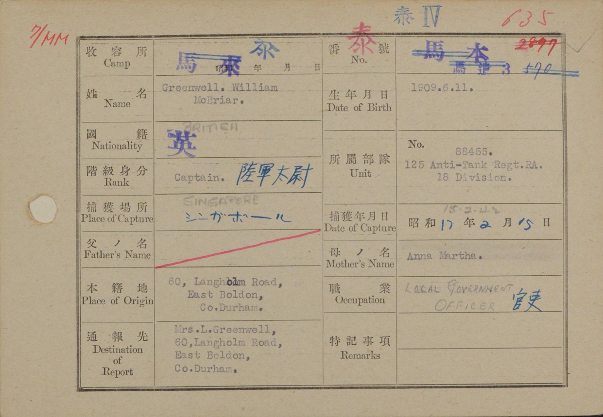 Story | Mother Anna Martha, before the war he was a Local Government Officer. A member of 125 Anti Tank Regt, 18 Division was captured on the 15th februrary 1942 in the fall of Singapore.